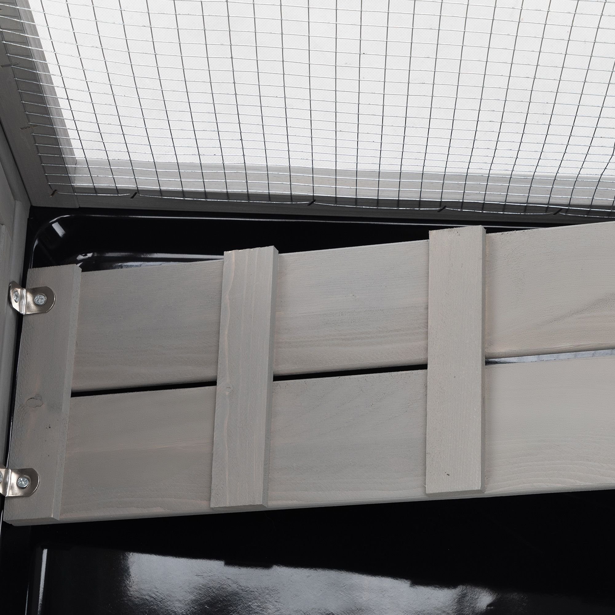 [Easy to Access and Clean]: The openable top, inner sliding door, and the side ramp door (all can be locked) make access, feeding, and interaction easily. The bottom waterproof PVC tray can be easily detached for thorough clean.