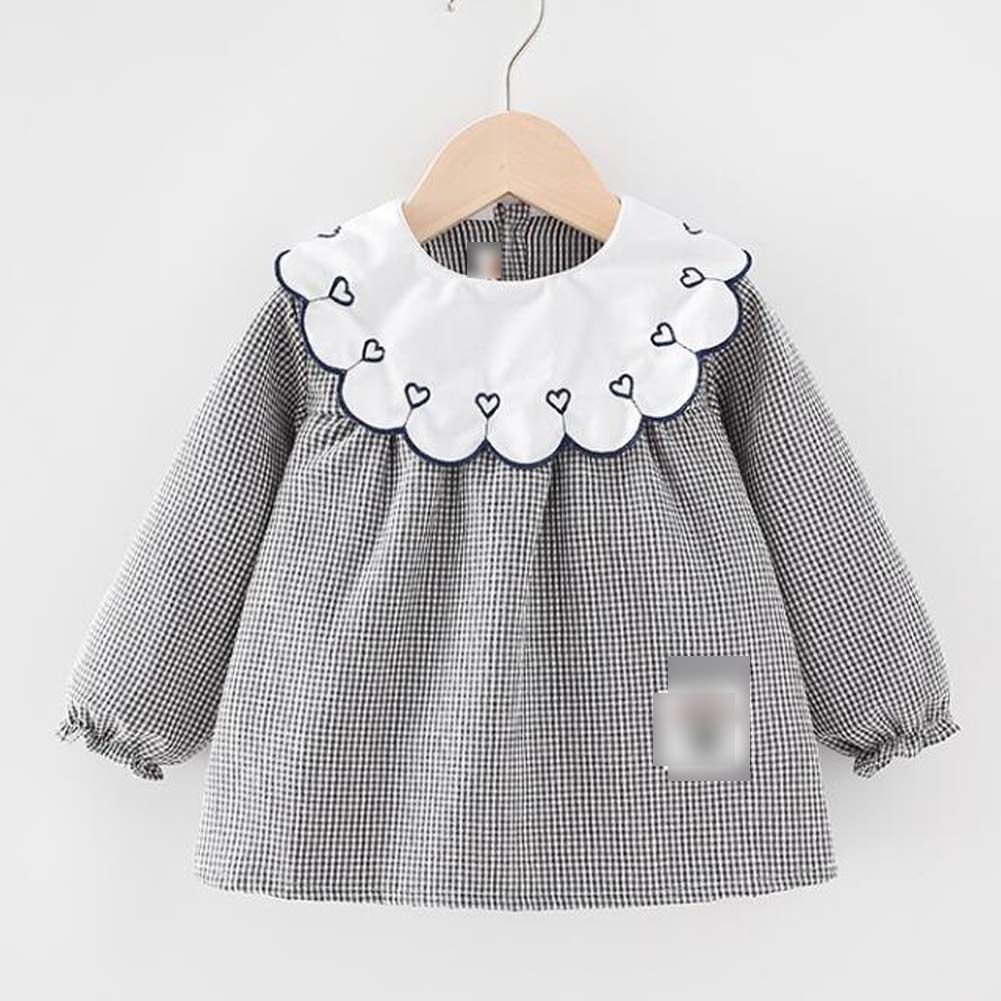 Black Grid Baby Eating Smock Long Sleeve Inner Waterproof Baby Bibs Girls Painting Smock Apron Black Grid Baby Eating Smock Long Sleeve Inner Waterproof Baby Bibs Girls Painting Smock Apron