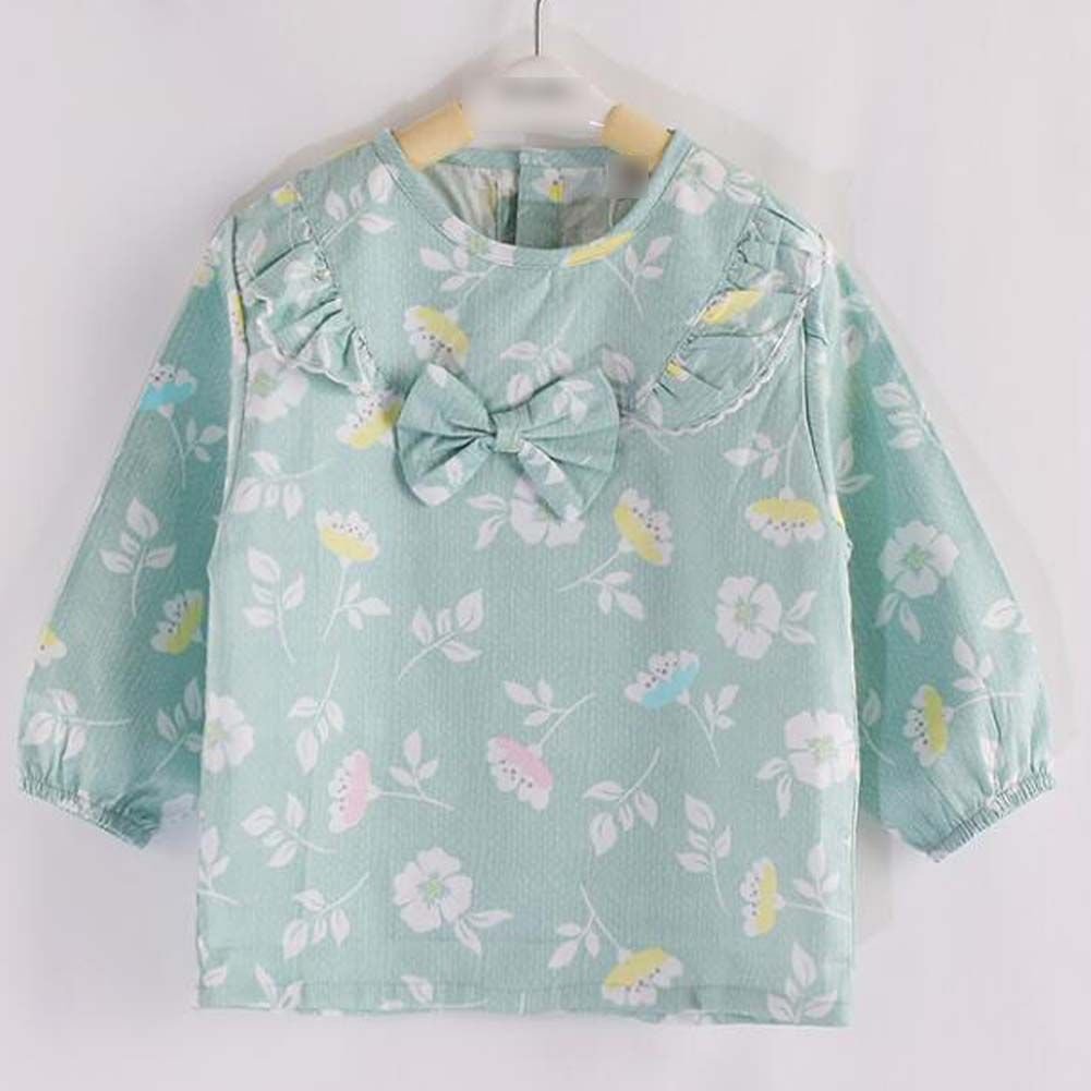 Green Flower Baby Eating Smock Inner Waterproof Kids Bibs Long Sleeve Princess Apron