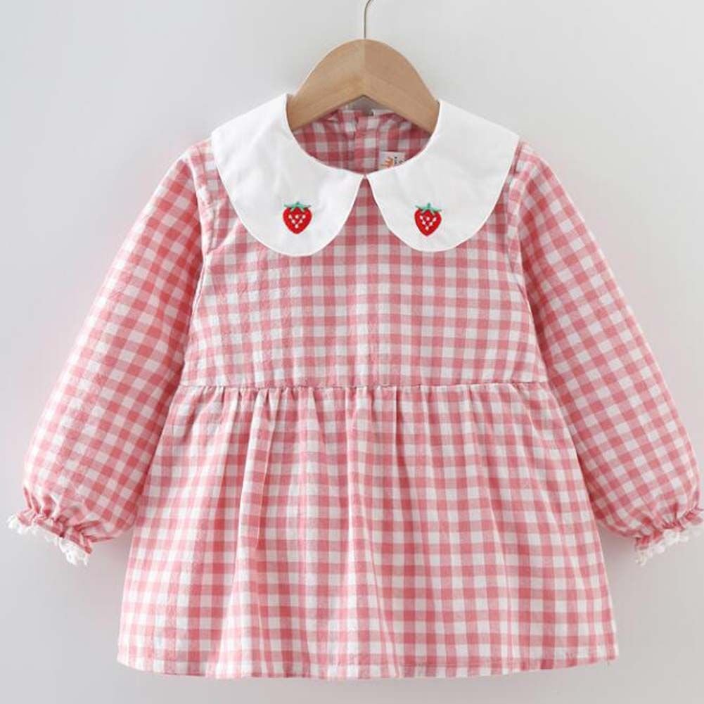 Pink Grid Baby Eating Smock Infant Inner Waterproof Bibs Girls Long Sleeve Painting Smock Apron