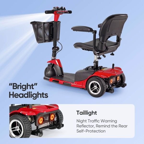 2024 Upgrade Mobility Scooter 3 Wheel Mobility Scooter, Upgrade Electric Power Mobile Wheelchair for Seniors Adult with Lights Collapsible and Compact Duty Travel Scooter w/Basket and Extended Battery Red/Blue Colors