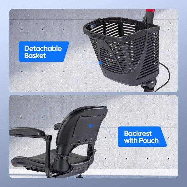 [Safety First]The mobility scooter has not only passed ISO and CE certification, and other safety certificates but also the rear wheels of the electric mobility scooter are designed with anti-rollover wheels, which provide all-round safety protection. Please read the instruction manual in detail before use to avoid improper operation that can't be used normally, and we provide lifetime support.