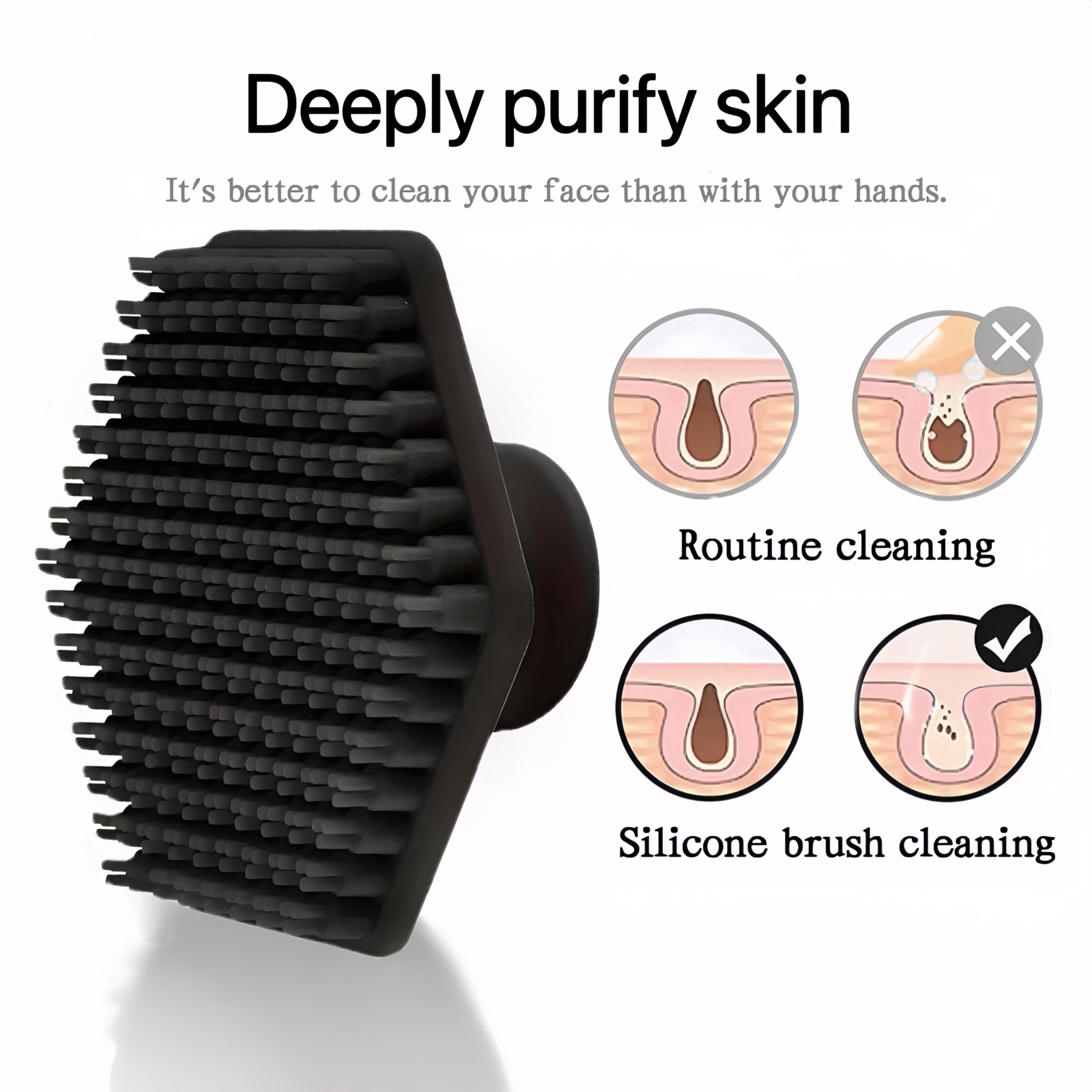 Medical-Grade Silicone: Our brush is crafted from food-grade, medical-grade silicone, known for its safety, durability, and skin-friendly properties, ensuring a comfortable and hygienic cleansing experience. This high-quality material is typically used in culinary applications for its purity and non-toxic nature, making it safe for all skin types.
