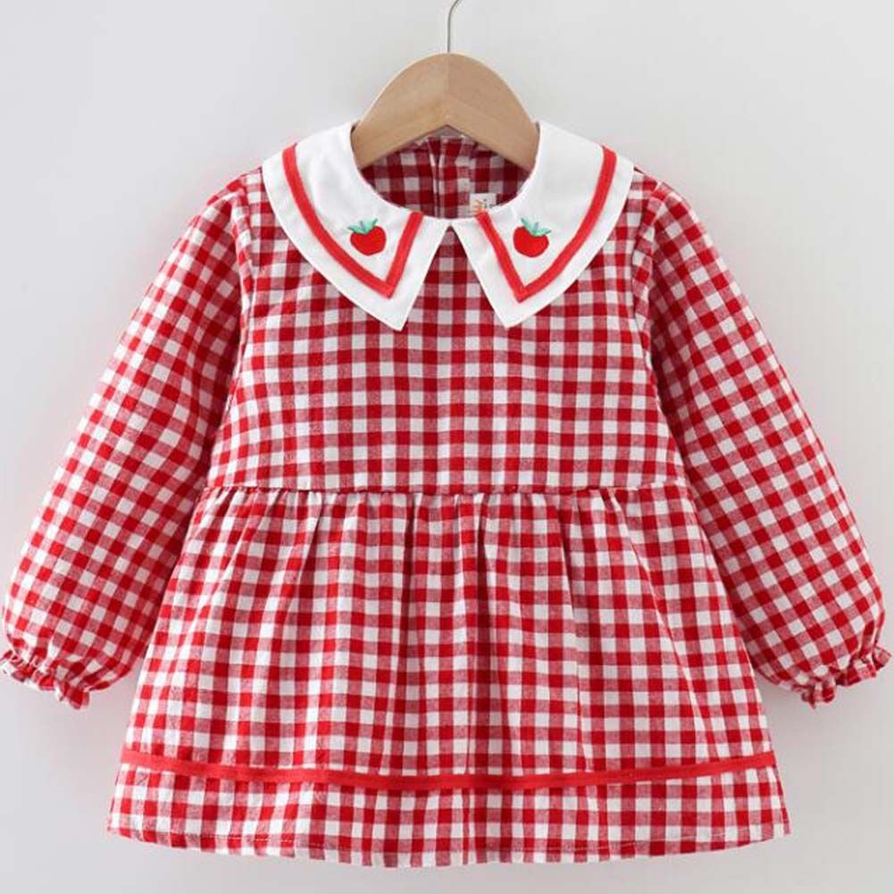 Red Grid Baby Smock Infant Eating Inner Waterproof Bib Girls Long Sleeve Painting Smock Apron Red Grid Baby Smock Infant Eating Inner Waterproof Bib Girls Long Sleeve Painting Smock Apron