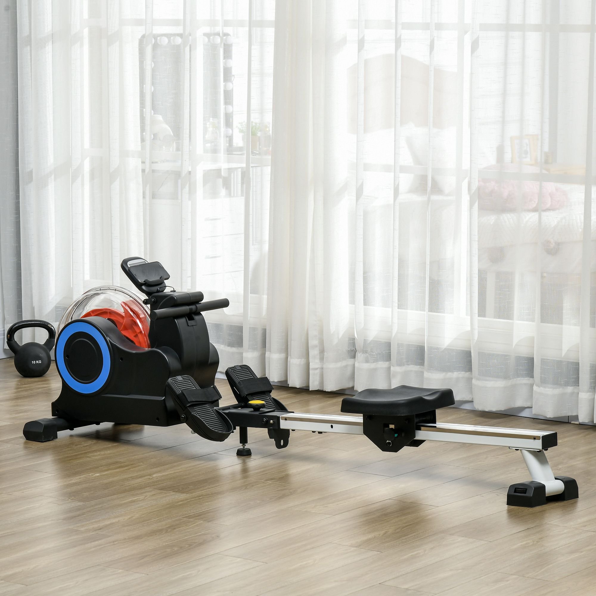 Home > Soozier Water Rowing Machine, Foldable Rower Machine with Adjustable Resistance, Wheels, LCD Monitor and Tablet Holder for Home Cardio Training, Blue