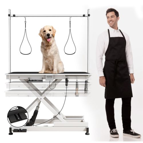 Heavy Duty Electric Grooming Table design for professional pet groomer. Table size: 49.6"X26", height adjustable from 8" up to 36"